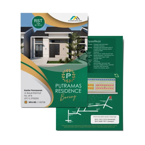 Desain Brosur Perumahan Puramas Residence Borang Palembang