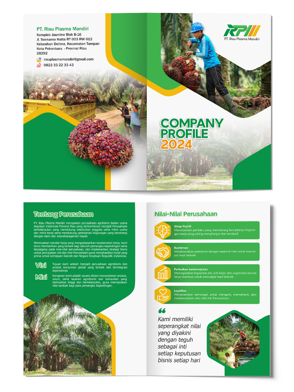 Tampilkan wajah profesional perusahaan Anda dengan desain Company Profile yang elegan, informatif, dan persuasif. Layanan desain profil perusahaan untuk instansi, korporasi, hingga UMKM di Palembang dan seluruh Indonesia.