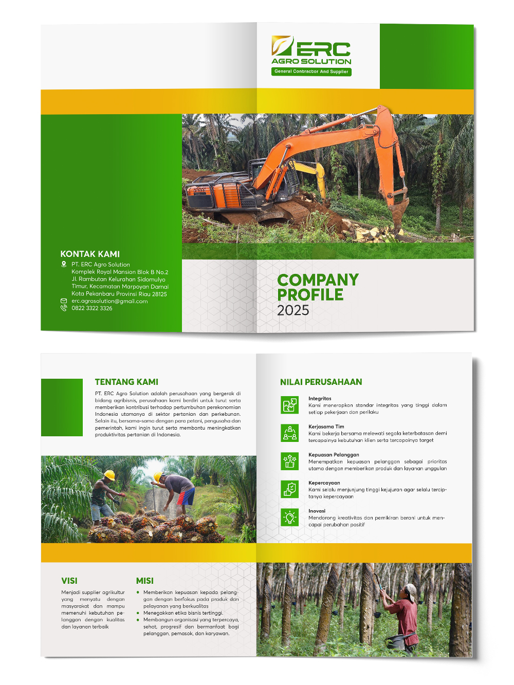 • Company Profile Digital (PDF): Versi interaktif yang ringan dan mudah dikirimkan melalui WhatsApp atau Email.